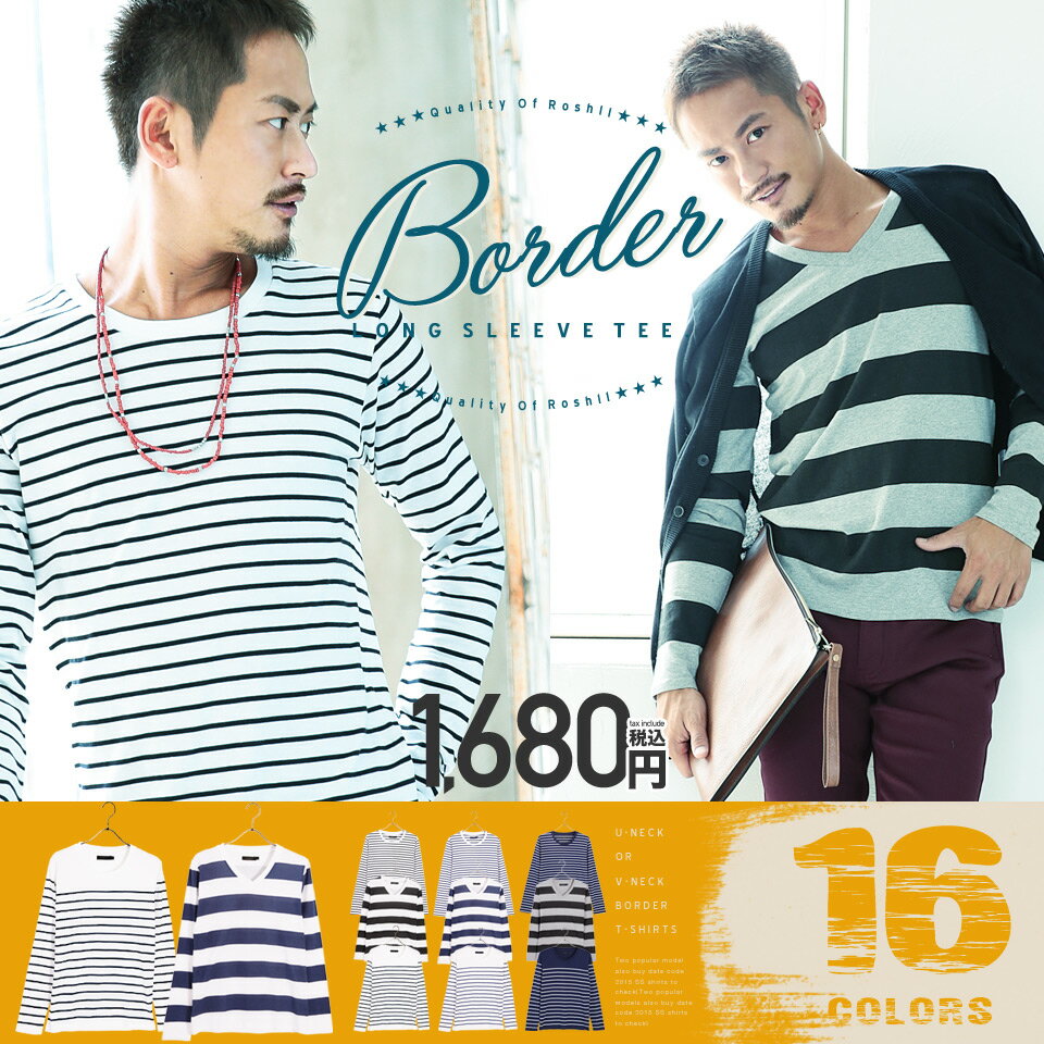 【送料無料】ボーダー メンズ ボーダー ロンT◆roshell(ロシェル) ボーダーロンT◆ボーダー メンズ Tシャツ カットソー 長袖 トップス クルーネック ボーダー Vネック 冬服 冬
