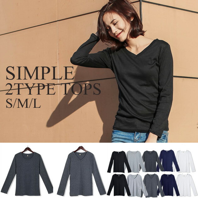 【期間延長★今だけ価格】Vネック ラウンドネック 無地 長袖 ロングスリーブ カットソー Tシャツ【lgf0367】レディース【即納】 メ別